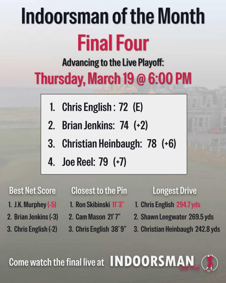 March’s Indoorsman of the Month tournament will be played at the legendary Old Course at St. Andrews.